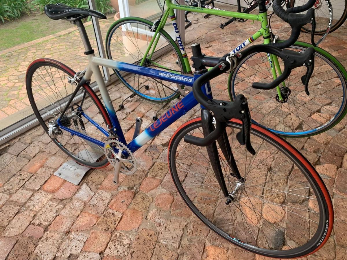 5. I recently bought a "new" second-hand Lejeune frame, which I intend to build so I can get back into road cycling. The frame does not appear to ever have been used, and the seller's story was that her husband bought it when dutoitcycles closed down, but never got around to building it. I'm trying to find information about the frame, so that I can properly plan a build so I was wondering if any of the bike nerds on here might be able to shed some light on it. In particular, I would love to know what rear derailleur hanger it needs, what width wheels it would take, and some indication of age so that I can try to match the components to the era. Here's what I know so far: - it's dutoitcycles bike (top-tube is branded as such), and seems to be part of the range when they relaunched the brand sometime in the 2000s - it's an aluminium frame, with a carbon rear triangle and an evo carbon fork. It appears FDT is no longer contactable so asking direct is no an option. I'd love to hear from anyone who knows about these bikes or who can help point me in the right direction.