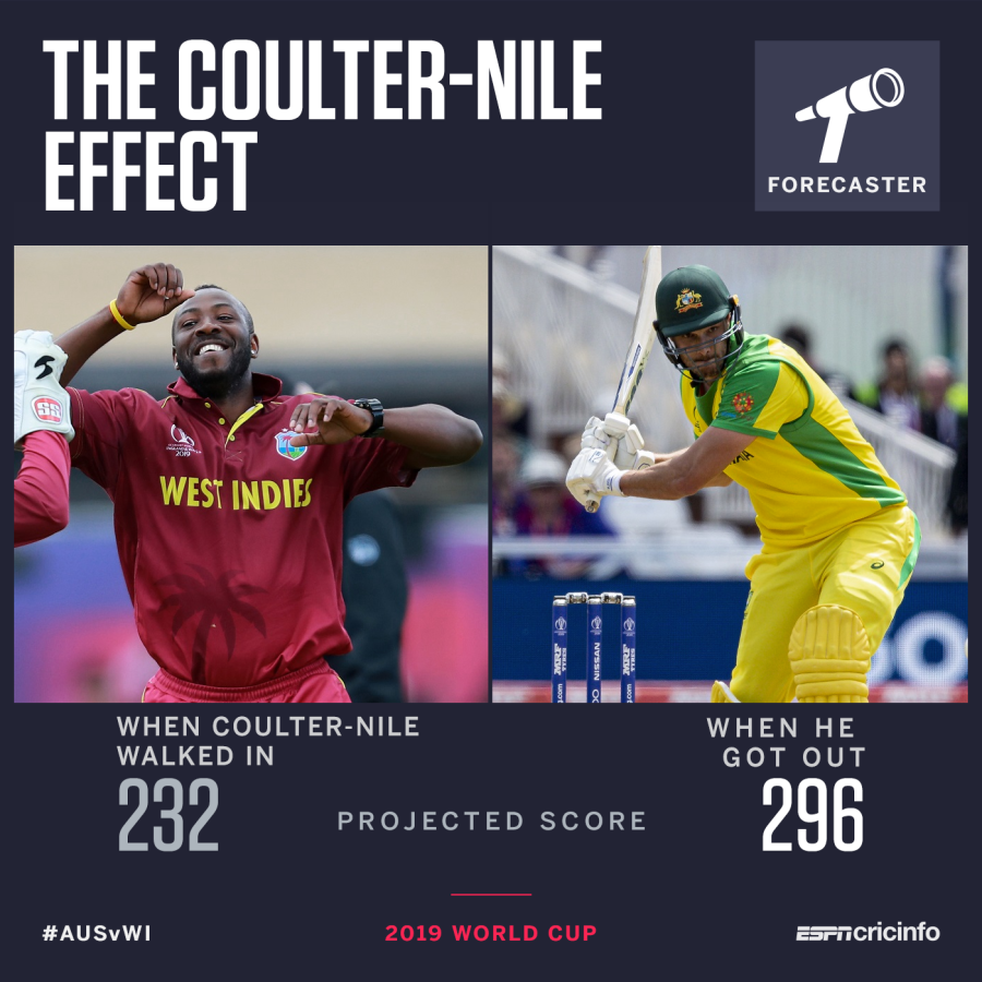 Windies/Aus game is nicely poised. Windies don't have a great lower order so need to get some partnerships through middle overs.