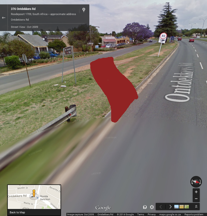 Along Ontdekkers road / Voortrekker road there are lots of frontal roads, roads that run next to the main road to give access to house/businesses.