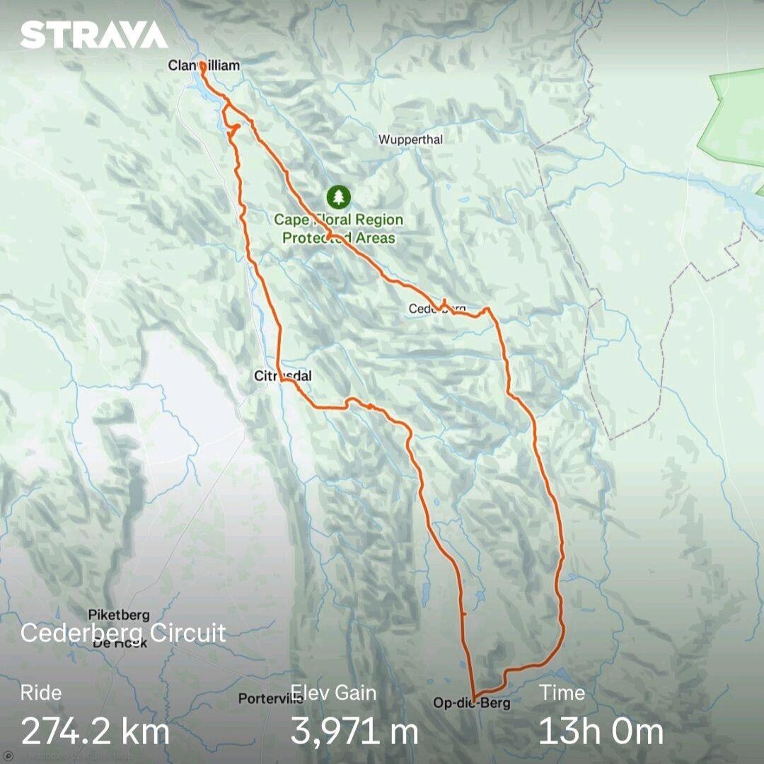 We followed a dirt road most of the way to clanwilliam and dirt road all the way to Cederberg oasis, wasn’t too bad, had some corrugations here and there but I did it on a hardtail without much issue. If you’re talking about the road directly from Cederberg oasis to op die berg from oasis side there was a big tough climb and quite a corrugated long road back as you leave the Cederberg, which eventually turns into a tar road back to op die berg.