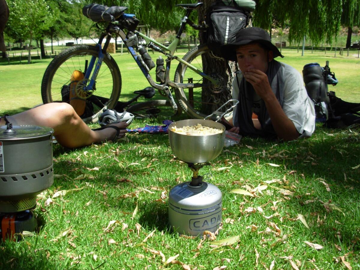 love the South African approach to bikepacking, with your braai pack cable-tied onto your bike :)